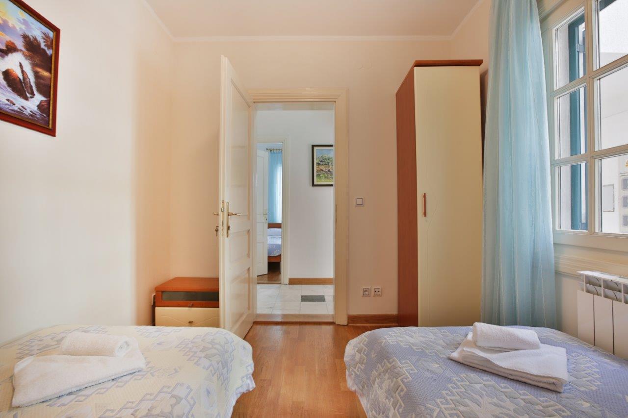 Apartman raspolaže sa 4 udobno namještene spavaće sobe. Dvije sobe su sa bračnim krevetom, a dvije sobe sa odvojenim krevetima.
